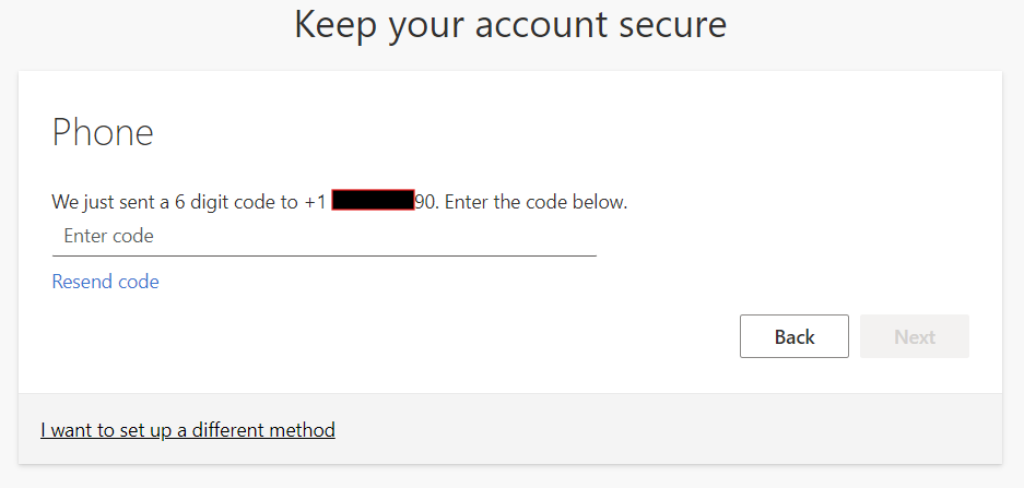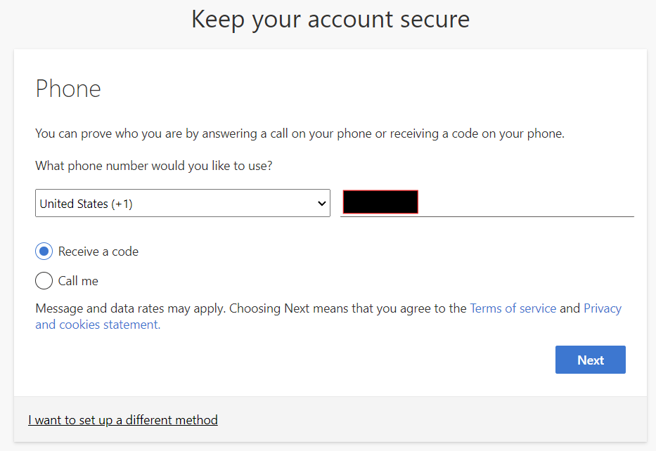 If you would rather receive a code via text or call, click "I want to set up a different method" on the screen
