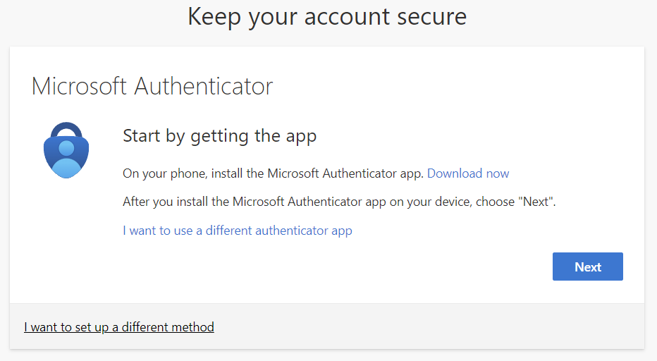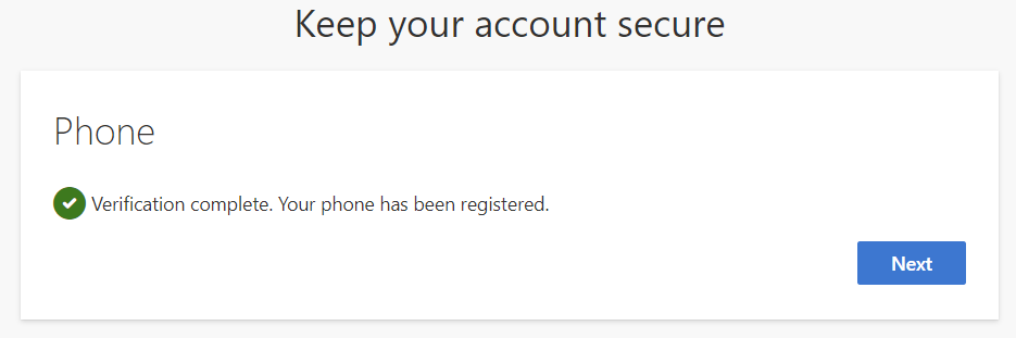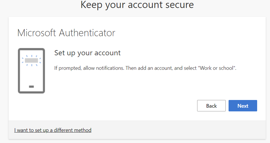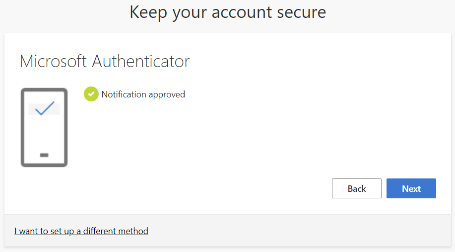 Once you have updated your password you should see the "Keep your account secure" screen.